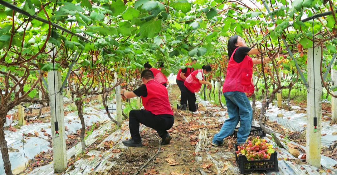 在葡萄园里,年轻干部们化身采摘能手,和农户共同协作,一串串饱满多汁的葡萄被摘下后整齐装箱,原本积压的订单正有条不紊地发往全国各地,既解了企业的急难愁盼,也让这份“葡萄甜”更快传递到消费者手中。