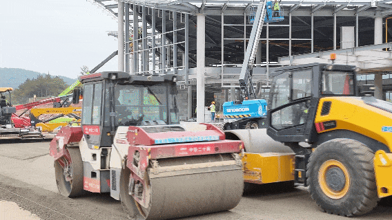而在京港澳高速孝昌服务区建设现场,巨大的摊铺机缓缓前行,压路机紧随其后来回碾压,轰鸣声此起彼伏,奏响了节日里独特的“建设交响曲”。工人们分工协作,紧张有序地进行着桥梁施工、路面施工等作业。