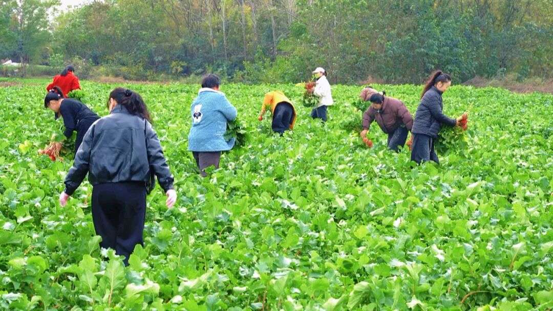 通过引进种植大户、盘活闲置土地,江河村的模式不仅调整了经济结构,更实现了村民“家门口就业、田间地头增收”,为乡村振兴注入了蓬勃活力。目前,全村萝卜种植面积达400亩,亩产6000至7000斤,带动村民增收超400万元。