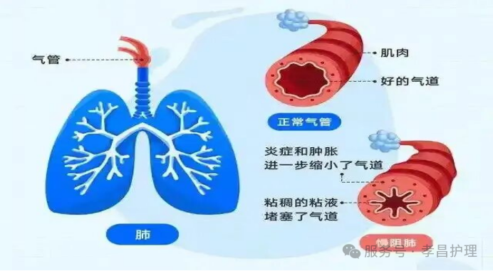 病情初期,肺里的“小气道”会慢慢变窄、堵塞,就像吸管被捏扁。随着时间推移,肺里的“肺泡”(负责换气的小泡泡)会破裂,形成“肺大泡”,导致肺部弹性越来越差,最后连基本的呼吸都要靠用力喘气,严重时晚上躺着都没法呼吸。