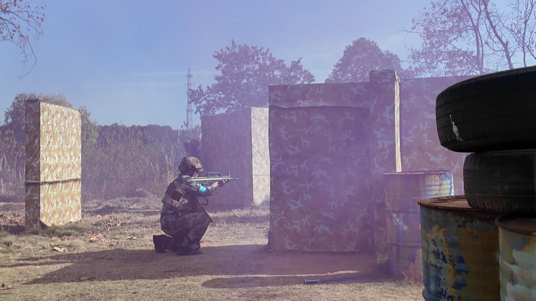 助跑、跨越、匍匐、瞄准、击发……手枪越障射击科目现场,激情与张力拉满。选手们快速通过五步桩、矮墙、低桩网等多重障碍后,迅速调整呼吸、举枪瞄准、果断击发,全程兼顾奔跑速度与射击精度,一系列动作行云流水,枪声此起彼伏。