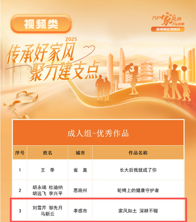 今年5月,饶嫜悦家庭获第三届“全国文明家庭”称号,这个荣誉不仅是对一个家庭的至高礼赞,更是对一种根植于红色沃土、以奉献为血脉的家风传承的隆重加冕。在乡村振兴的壮阔图景中,饶嫜悦一家默默践行着属于这个时代的家庭价值典范,在荆楚大地汇聚起支撑发展“家庭支点”的坚实力量。