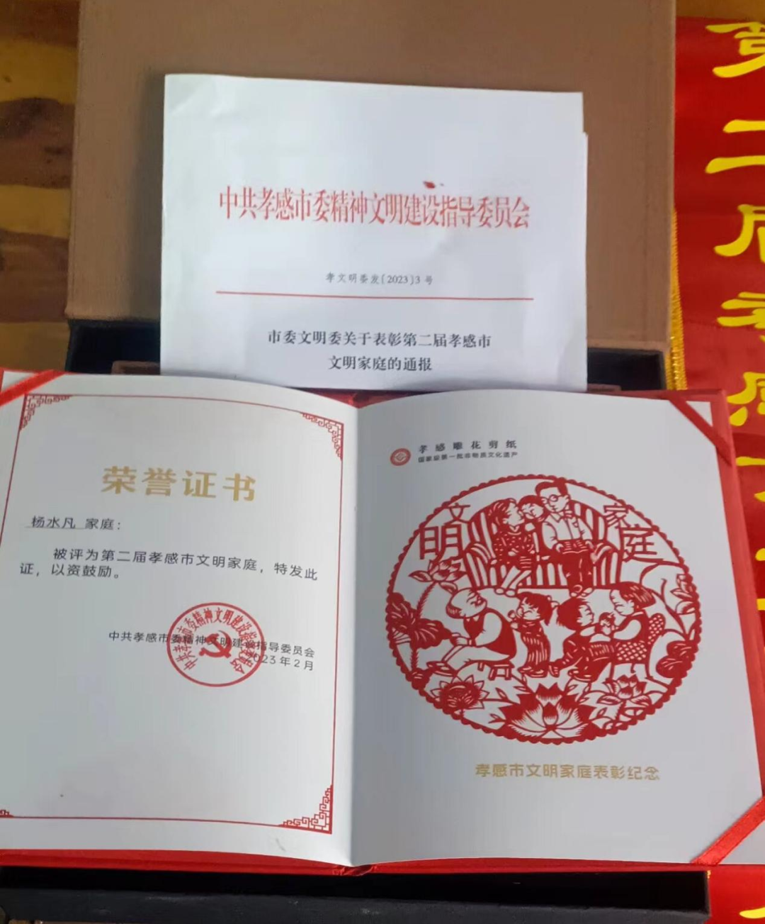 在孝昌县邹岗镇牛迹村杨陈湾,提起杨水凡一家,乡亲们无不交口称赞。这个被评为孝感市文明家庭的普通农家,生动诠释了爱国爱家、相亲相爱、向上向善、共建共享的社会主义家庭文明新风尚。他们的故事,是千千万万荆楚家庭传承好家风、为湖北支点建设贡献“微力量”的动人缩影。