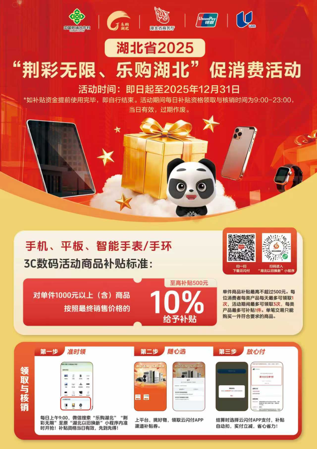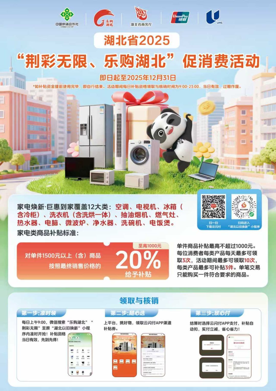 本次“荆彩无限、乐购湖北”消费补贴活动涵盖三大热门品类,每一款都能省出真福利:
