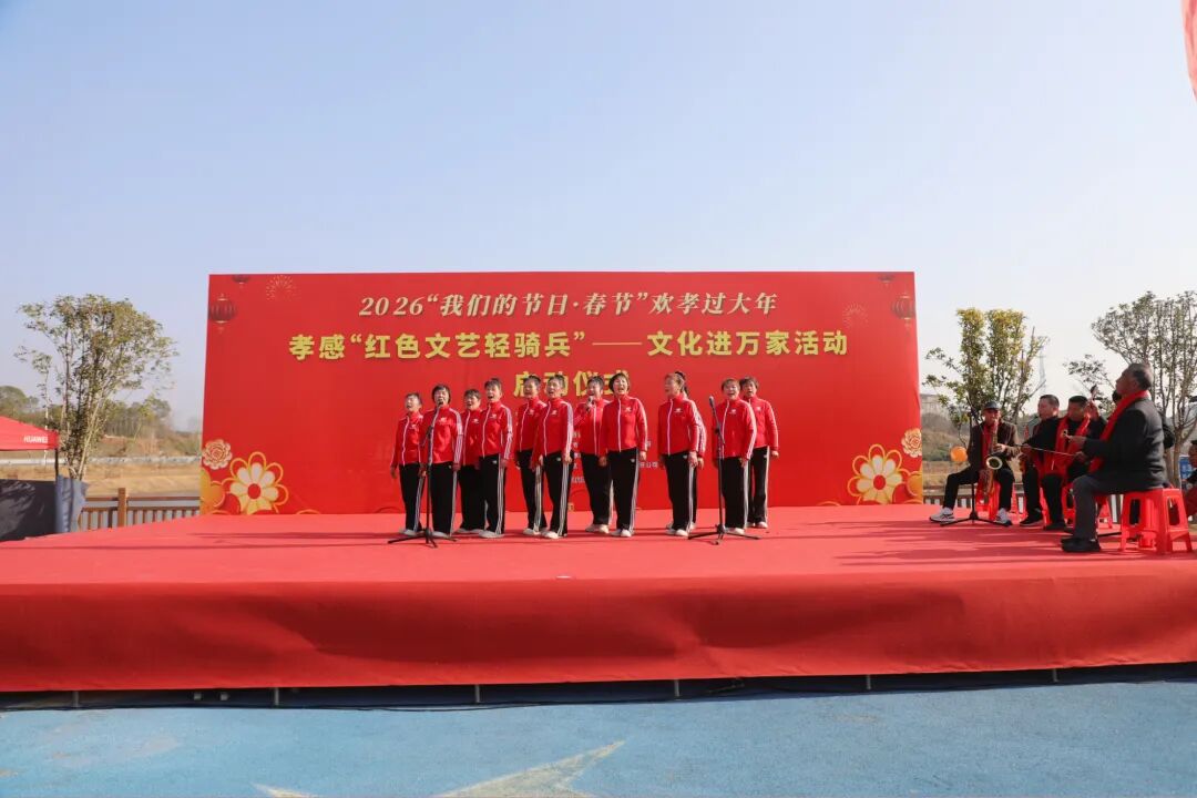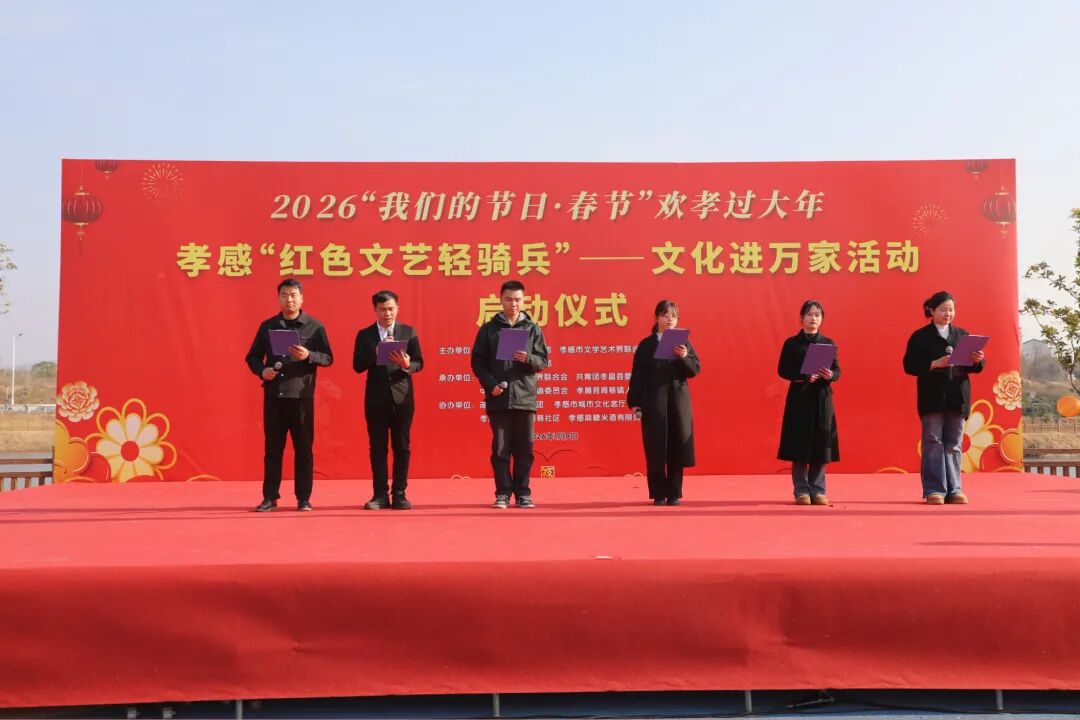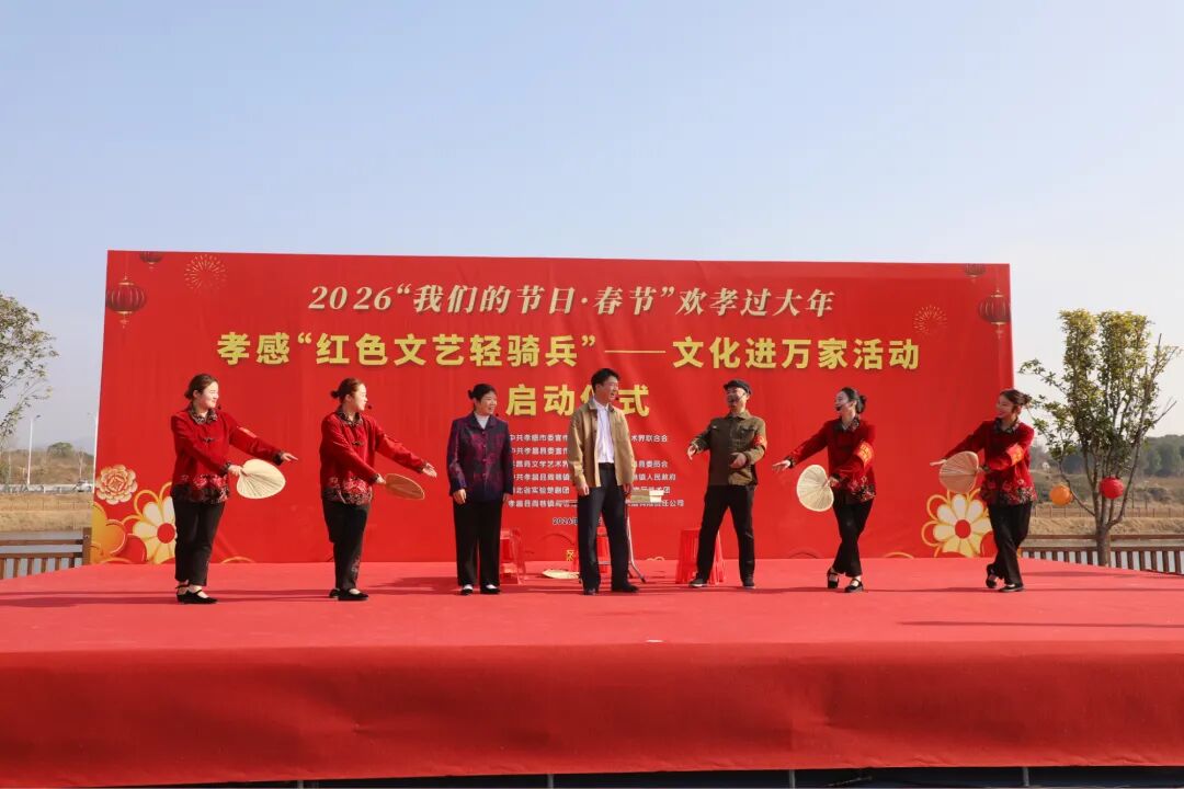 文化惠万家,欢笑过大年。1月9日,2026年“我们的节日•春节”欢孝过大年 孝感“红色文艺轻骑兵”——文化进万家活动启动仪式在孝昌县周巷镇举行,将歌舞盛宴、春联福字送到群众身边,让他们在浓郁文化氛围中欢度新春,感受孝文化与时代新风的交融魅力。