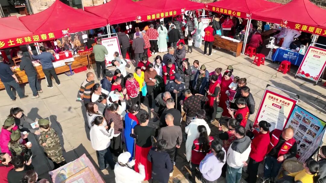 农夫子教育培训基地举办了“非遗贺岁·农韵迎新”活动,游客们纷纷化身“手艺人”,沉浸式感受传统文化的乐趣,而琳琅满目的优质农产品也吸引游客驻足选购,现场购销两旺,一派红火景象。