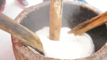 “早就听说太子米很好吃,今天我特地带着孩子过来感受腊八节的节日氛围,刚才喝了太子米煮的腊八粥,还尝了现打的糍粑,很好吃,我还买了几袋太子米和腊味,带回去给家里人尝尝。”游客王芳说。