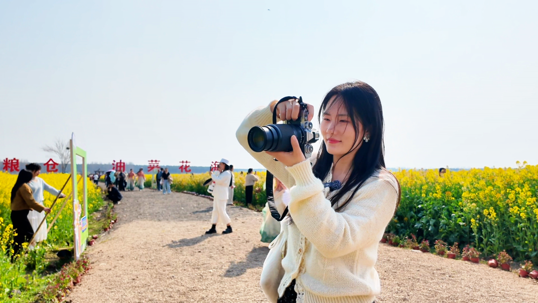 “今天天气特别好,在网上看到了这边有油菜花海,和朋友们一起来游玩的时候都是穿着古装,过来拍照很出片。”游客曹海怡说。