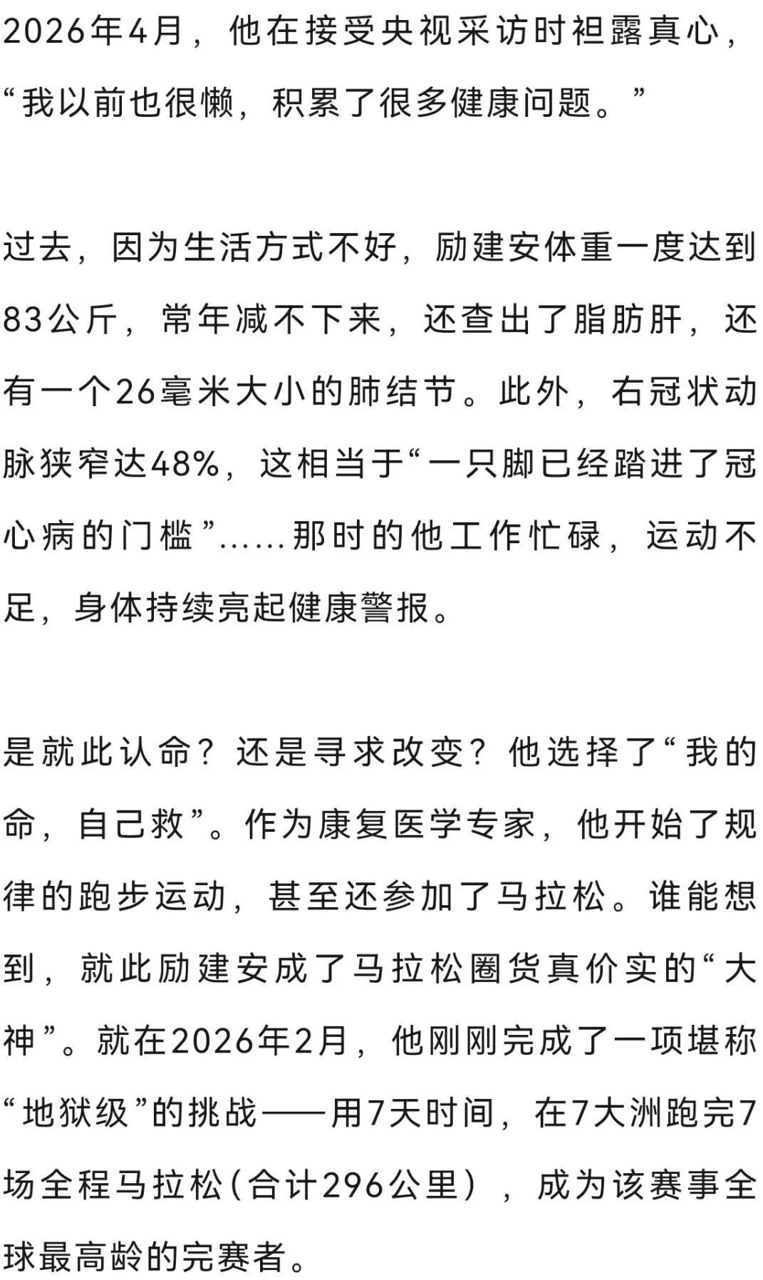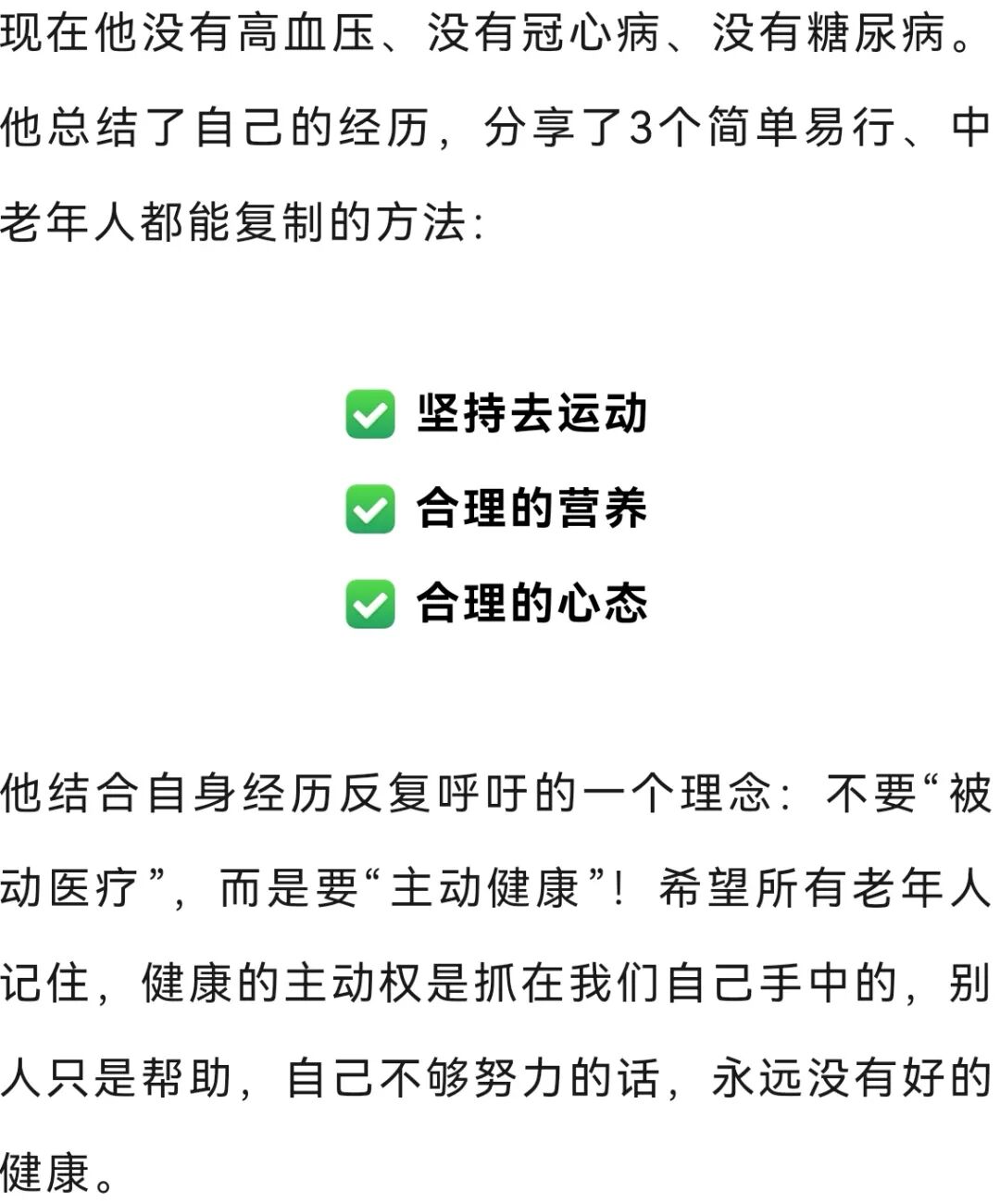 但,真的是这样吗?一位74岁医学专家励建安的亲身经历,狠狠推翻了这种“认命”。他用一场震撼的“健康逆袭”告诉我们:健康的遥控器,从一开始就在我们自己手里。什么时候按下“开始”,都来得及!