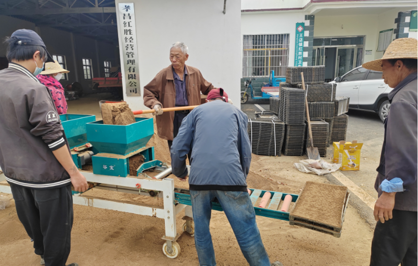 镇村干部在走访时发现,红胜村不在家农户代耕代种需求大,为积极响应国家乡村振兴战略,致力发展壮大村集体经济,提高农业生产效率,王店镇因村施策,结合产业政策和各村实际,实施村级个性化发展,学习借鉴外地先进经验,指导并帮助红胜村强村公司购置了智能农机设备,充分利用现代化农业技术,采用秧盘育秧的方式,提高育秧效率和质量。
