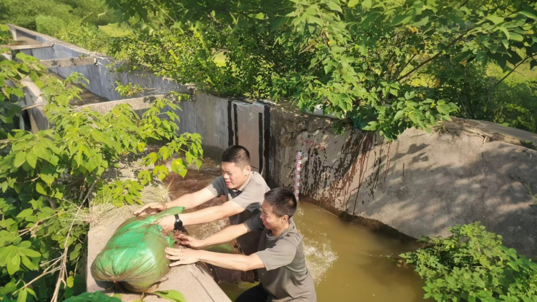 7月31日夜间12时,新岗村“两委”干部仍坚守在农田灌溉渠道边,确保该镇从芳畈水库协调支援的水源在经过新岗村时,能第一时间浇灌农田,守住农民的“粮袋子”。