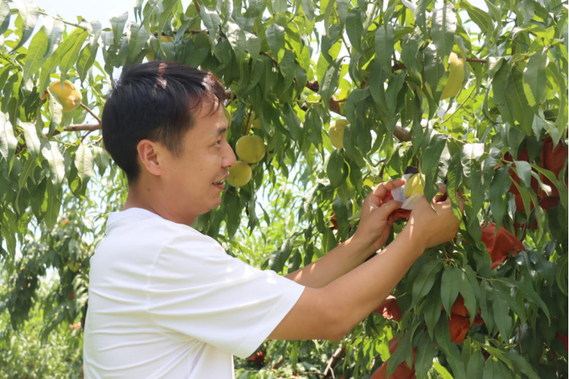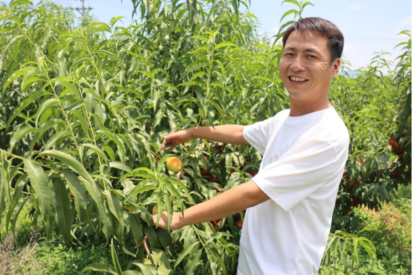 杨杜斯种出的桃子口感好、质量高,很快就在市场中占据了一席之地。许多村民得知了他能“以桃生金”,纷纷上门求教。热心的杨杜斯总会耐心地对待每一位乡亲。丰山村十三组村民杨亮跟着杨杜斯学习种桃,今年已是第三年,目前种植了约七十亩桃子。从建园、田管到销售,杨杜斯为他提供了“一站式”的支持与帮助。杨杜斯笑着对记者说,自己吃过的亏,不能让乡亲们再吃一遍。