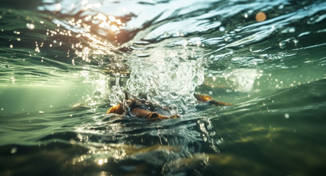❶ 突然安静无声,嘴没入水中。