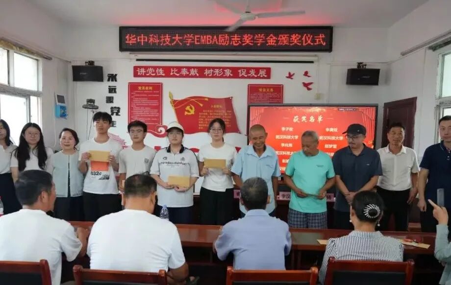 8月30日,孝昌县王店镇联合华中科技大学EMBA教育中心,在东河村党群服务中心举办2025年“华中科技大学管理学院EMBA励志奖助学金”颁奖仪式,共对35名录取本科、研究生及重点高中的学生进行表扬,并现场发放51500元奖学金。