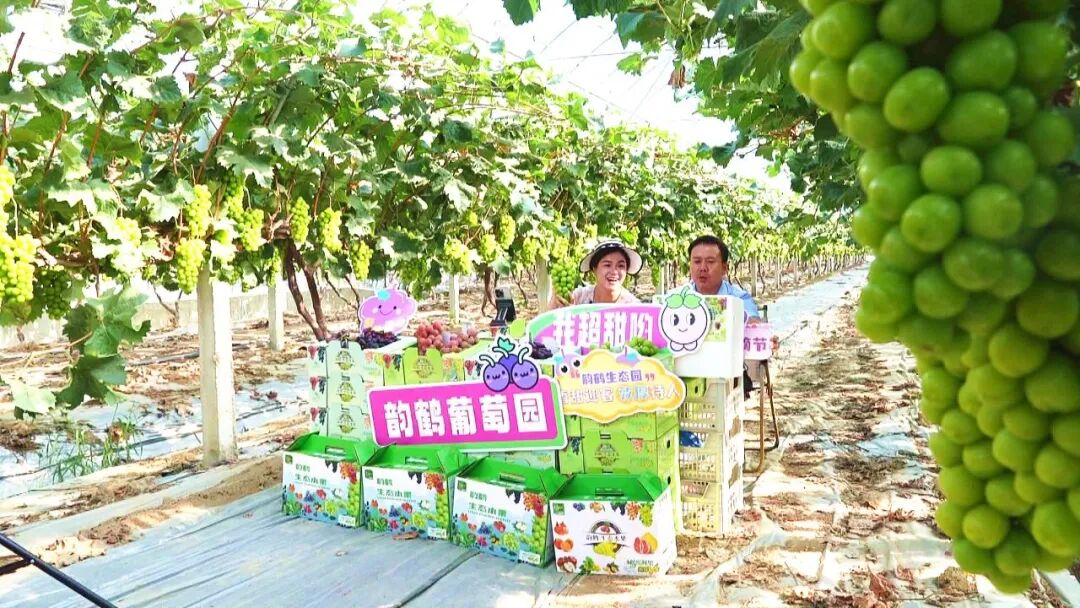 走进韵鹤生态园采摘区,红艳的妮娜皇后、翠绿的阳光玫瑰、深紫的蓝宝石挂满藤蔓,果香四溢。由于葡萄采摘季活动的爆火,葡萄订单量激增,采摘、分拣、打包、装箱的人手严重不足,大量成熟葡萄面临滞留风险。