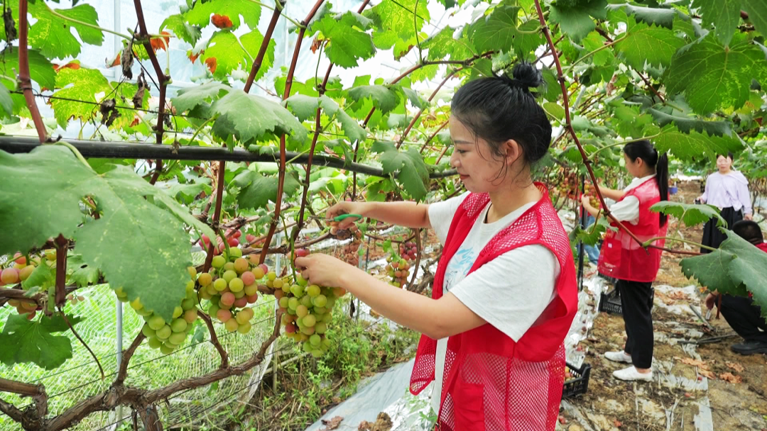 在葡萄园里,年轻干部们化身采摘能手,和农户共同协作,一串串饱满多汁的葡萄被摘下后整齐装箱,原本积压的订单正有条不紊地发往全国各地,既解了企业的急难愁盼,也让这份“葡萄甜”更快传递到消费者手中。