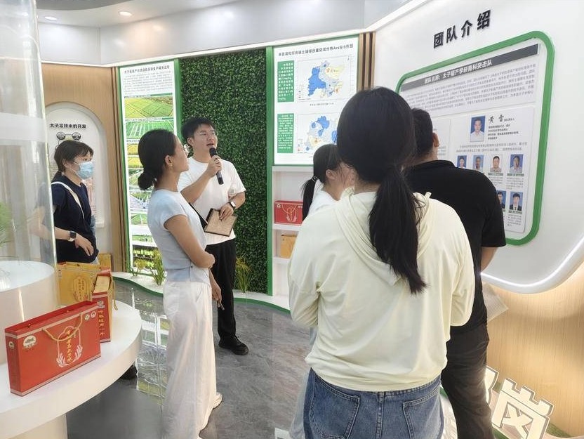 镇机关年轻干部先后来到万亩太子稻种植示范基地、牛迹村小夏湾、华锌现代农业科技产业园、稻梦星空、太子米文化展厅,实地参观了太子米产业发展、农旅融合、乡风文明建设等方面的情况。在万亩太子稻种植示范基地,杨立威讲解了该基地以规模化、标准化、生态化种植为核心的发展路径,突出其在夯实太子米产业基础中的关键作用;在华锌现代农业科技产业园,王雨佳详细介绍了产业园聚焦太子米精深加工、市场化运营与全渠道销售的战略布局,体现“产加销一体化”对太子米产业增值的重要意义;在太子米文化展厅,高爽阐释了太子米的文化底蕴、品牌故事与推广策略,彰显邹岗以文化赋能产业、以品牌提升价值的创新探索。