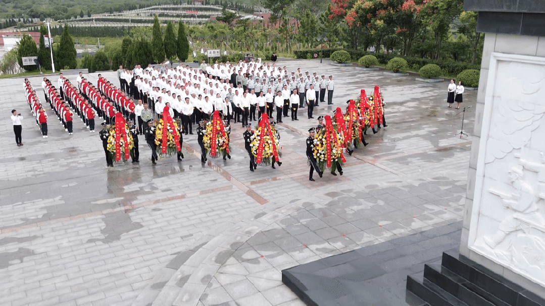 全体人员面向纪念碑列队肃立,向革命烈士默哀,表达最崇高的敬意。