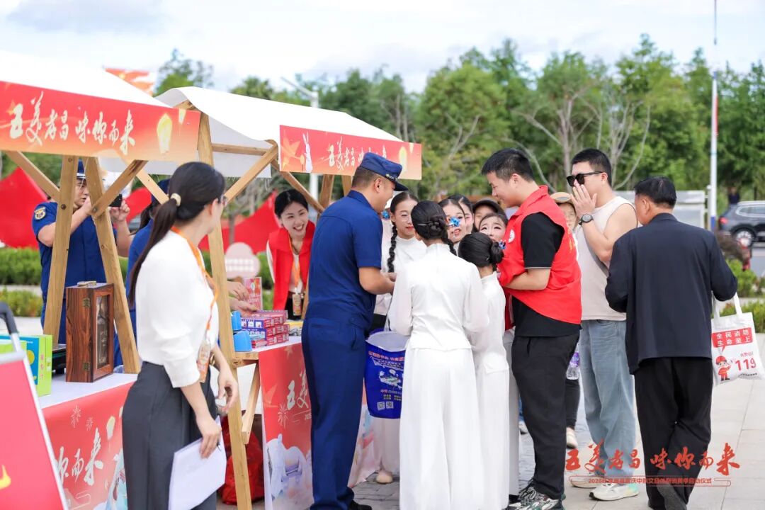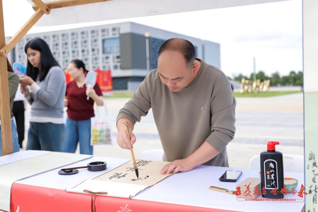 在舞台的另一侧,琳琅满目的商品摆满各个展位,顾客们穿梭其间挑选心仪的商品。此次好物市集展销划分非遗手作、农特产品、文创潮玩三大展区,汇聚十余家商户。不少文创摊主推出的国庆主题手办、中秋定制饰品引发市民追捧。