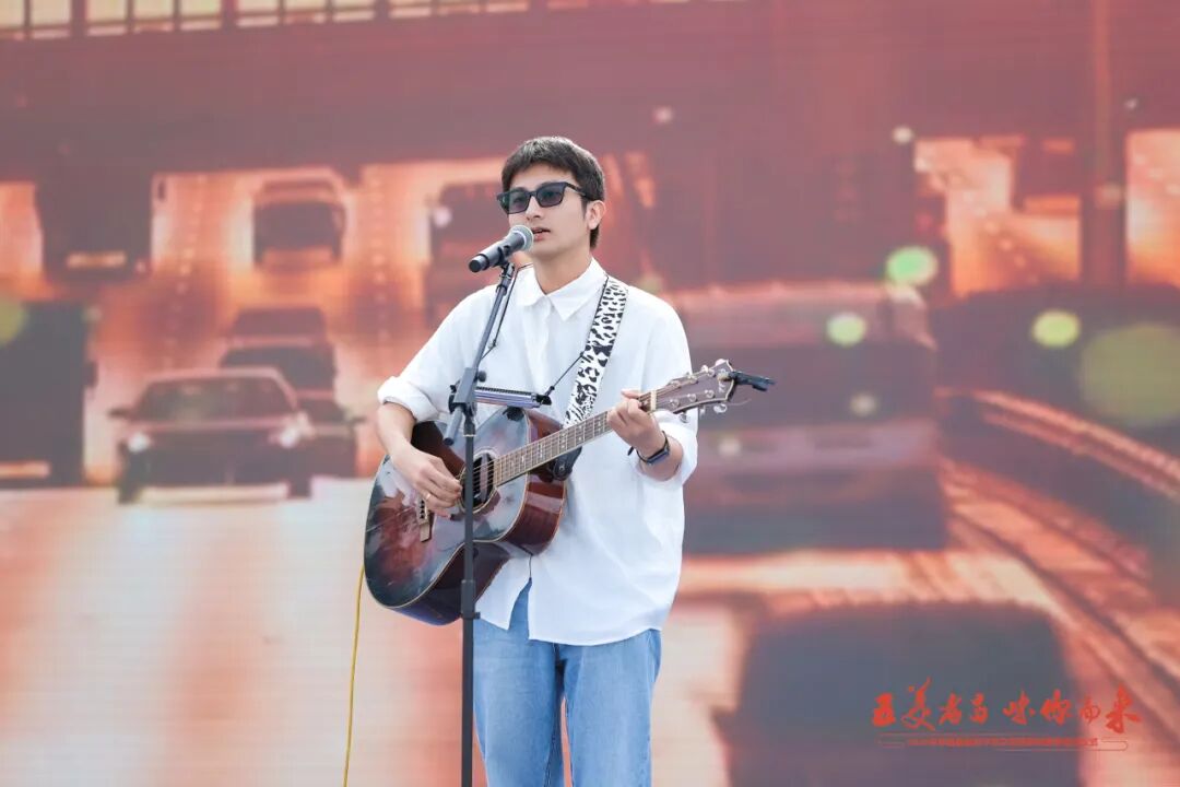 文体中心广场主舞台上,国风民乐演奏、红色经典合唱、现代舞表演等节目轮番上演,市民游客驻足观赏、拍照留念,定格双节美好瞬间。