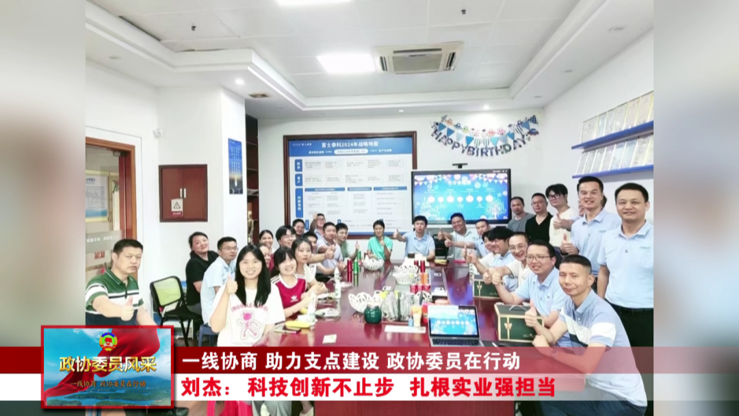 一线协商,助力支点建设,政协委员在行动。观众朋友您好,欢迎收看今天的政协委员风采栏目。民营企业长成“参天大树”,离不开自身的奋力拼搏。在粤经济高质量发展的道路上,有一个执着奋进的身影,他就是县政协委员、深圳富士泰科电子有限公司总经理刘杰。多年来,他以“诚信经营,客户至上”的坚定信念,在企业创新与政协履职的双舞台上,书写着属于自己的精彩篇章,为孝昌的崛起发展添砖加瓦。今天的政协委员栏目让我们一起走进《刘杰:科技创新不止步 扎根实业强担当》。