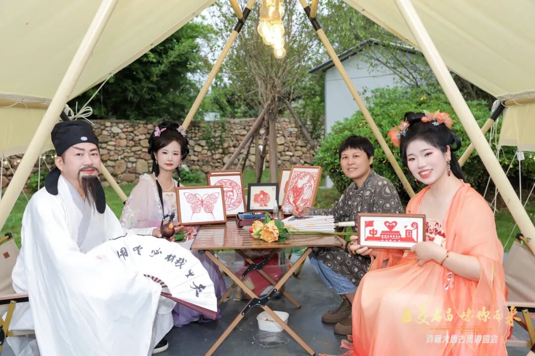 丰山镇大唐生态观光园举办的“诗画大唐古风”主题游园会,将文化体验、汉服巡游、古乐表演等元素融入现代休闲,游客身着汉服游园赏景,沉浸式体验孝昌书法、剪纸的魅力,触摸传统文化的脉络。
