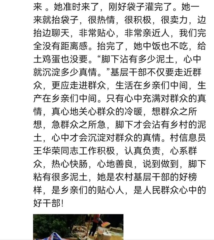 “脚下沾有多少泥土,心中就沉淀多少真情。”丰联村村民沈四清在朋友圈写下这样一段话,质朴的文字背后,是村民对王华荣最真诚的认可。