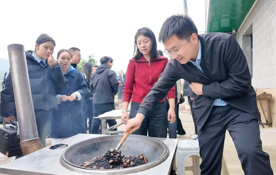 活动首站,年轻干部走进悟乡村联合社,探寻“小包裹”里的“大民生”密码。联合社内米粮油区、村级特供农产品区、特色农产品区有序陈列,直观呈现本土品牌发展成果。近年来,小悟乡创新推行“村集体+合作社+农户”模式,建成14个寄递物流服务点,月均包裹吞吐量超9000件,累计投递12.6万余件,既激活了村集体经济活力,更让年轻干部现场学到了“联农富农”的实操路径,为其今后推动产业振兴积累了“实战经验”,夯实了履职能力基础。
