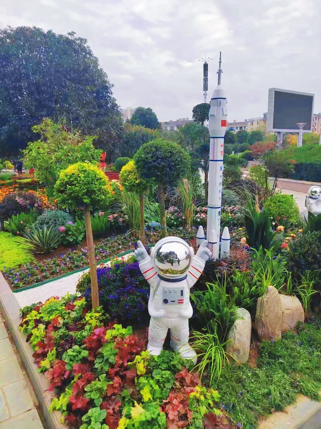 黄金菊灿云霞染,碧宇航模锦绣连。