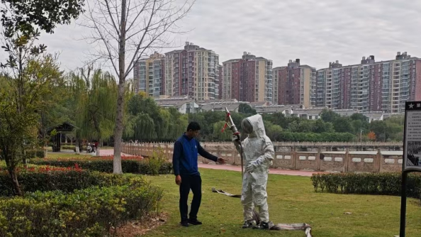△2020年11月17日晚,新疆巴音郭楞蒙古自治州库尔勒市孔雀河畔,狮子座流星雨划过天空。