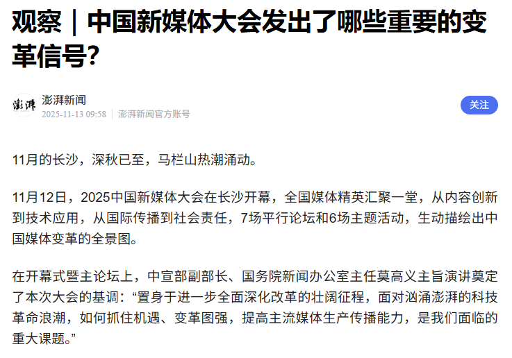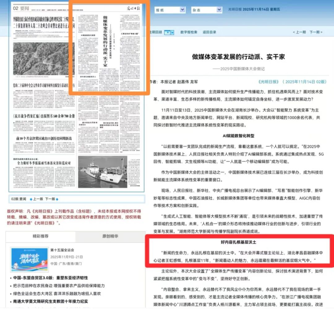 接到参会通知的那一刻,我的心情五味杂陈,荣幸与惶恐交织,激动与焦虑并存。中国新媒体大会是行业内的顶级盛会,开幕式暨主论坛更是汇聚了全国媒体界的领军人物,探讨的都是AI赋能、媒体融合系统变革等前沿命题。而我,只是一名来自县级融媒体中心的基层记者,11年的工作轨迹始终围绕着田间地头、市井巷陌,报道的是家长里短、民生琐事。“最高平台、最高规格、全国唯一基层代表”,这三个标签像三座大山压在我心头,让我既深感使命光荣,又倍感压力山大。