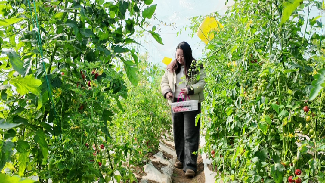 “这里的小番茄个头饱满,现摘现吃特别清甜,还准备带一些回去,送给亲戚朋友。”游客魏薇说。