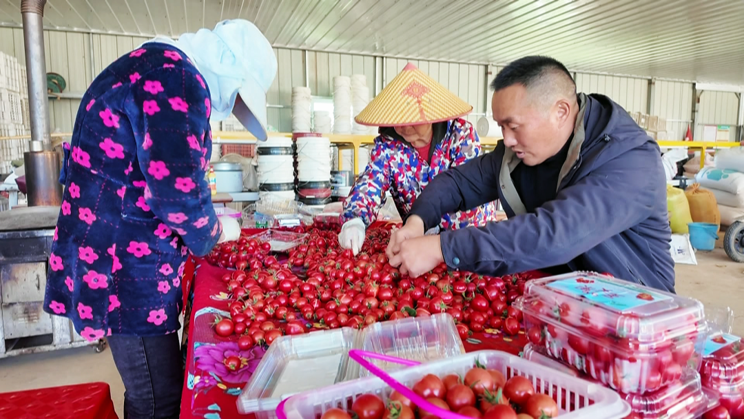 基地负责人黄金雷介绍,基地采用绿色无公害种植技术,全程不使用农药和催熟剂,通过科学管控温度、湿度和光照,保证了小番茄的品质和口感。