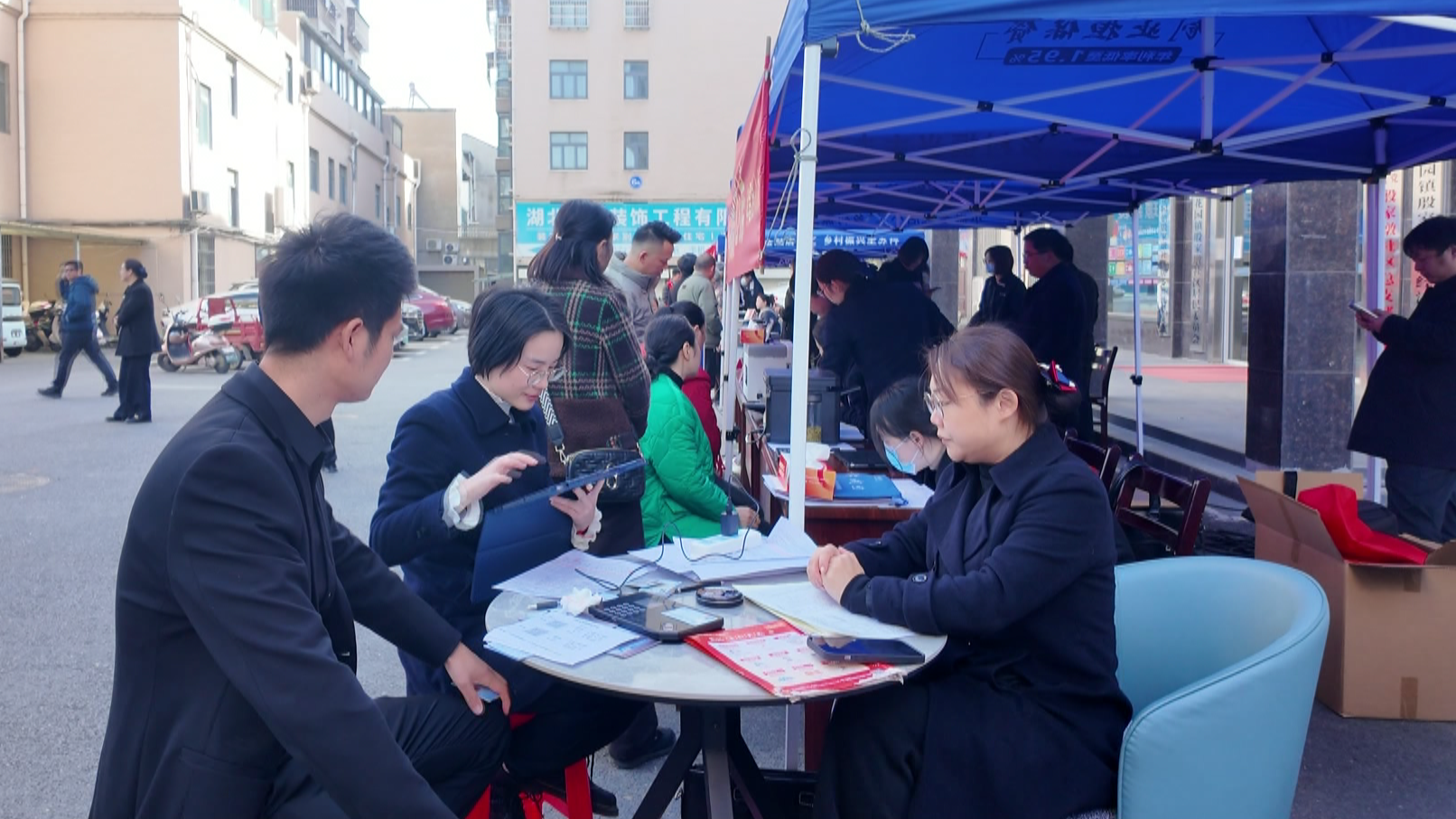 “我在社区群里看到今天举办活动,有招聘的,还有办社保卡,就来给我儿子找份工作,看看有没有合适的。”花园镇殷家墩社区居民姚清祝说。