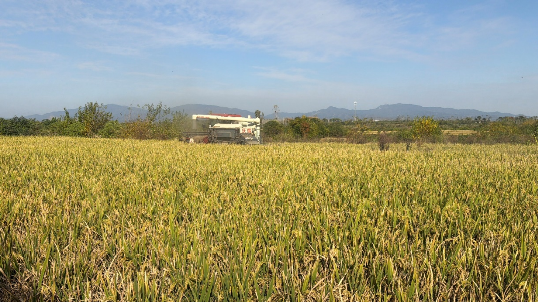 “平均6分钟就能收完一亩地。”他兴奋地告诉记者,这两天格外忙碌,要抢晴天收割稻子。