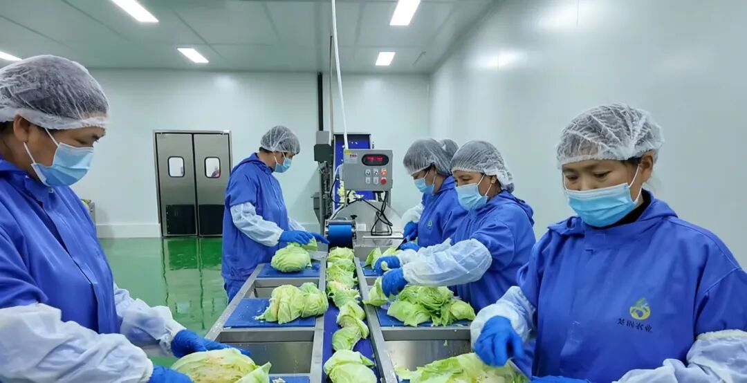 是隔壁净菜加工中心的忙碌景象