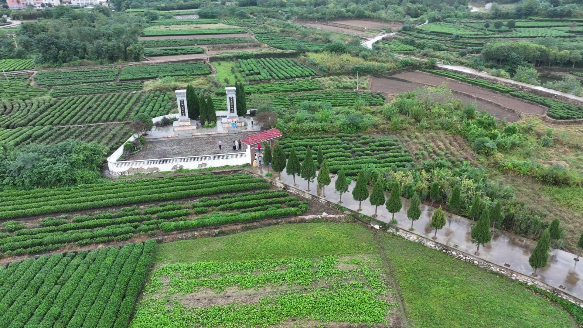 双峰英烈园被茶园环绕。(湖北日报全媒记者 方桐 通讯员 吴荣 杨艳容 摄)