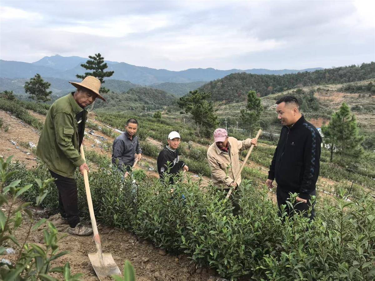 双峰村80后党员黄勇国(右一)不断扩大茶园面积,带动更多村民增收。(通讯员 王巍洁 摄)