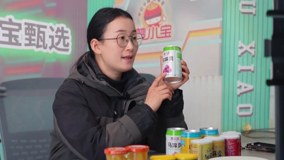 “家人们好,今天给大家带来的是‘楚小宝’马蹄爽,这款马蹄爽有自己的基地,经过现挖、现摘送到工厂来进行加工……”湖北大展食品有限公司销售人员赵瑞敏介绍道。