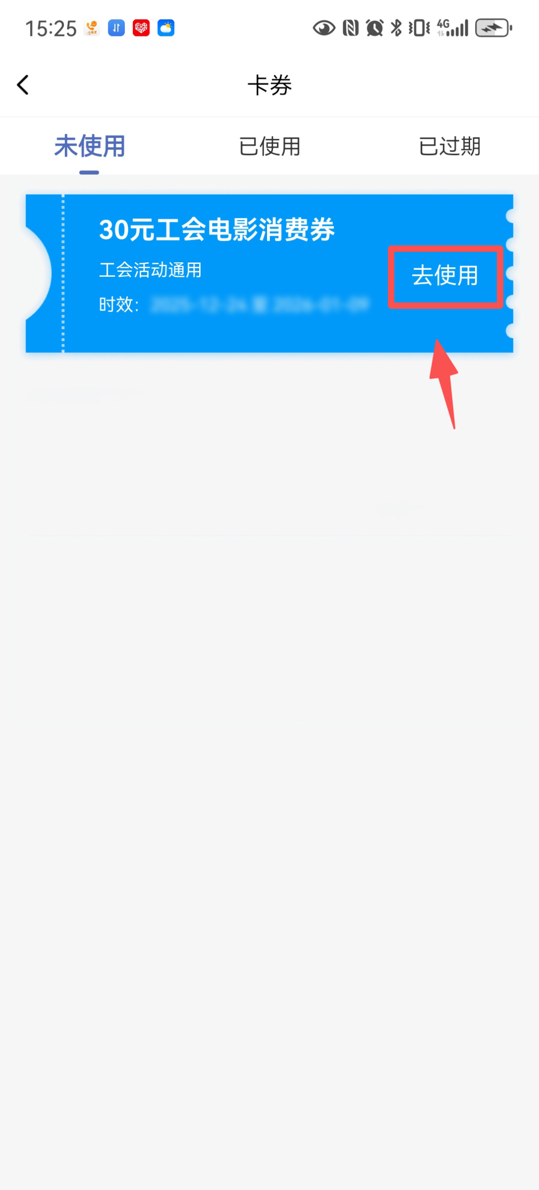 方式二:领券后在首页【我的】-【卡券】找到该券,点击【去使用】后,选择您想观看的影片,确认影城及观影时间并选座后“确认兑换”即可。