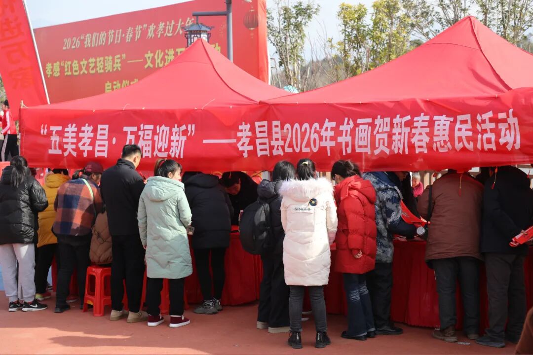 此次活动由中共孝感市委宣传部、孝感市文学艺术界联合会、中共孝昌县委宣传部联合举办,以“我们的节日·春节”欢孝过大年为主题,以荆楚“红色文艺轻骑兵”文艺演出、送春联、送福卡、年货赶集为主要活动形式,以文艺为桥传递党的关怀,营造欢乐祥和的节日氛围,丰富乡村百姓的精神文化生活,为乡村振兴注入精神动力。