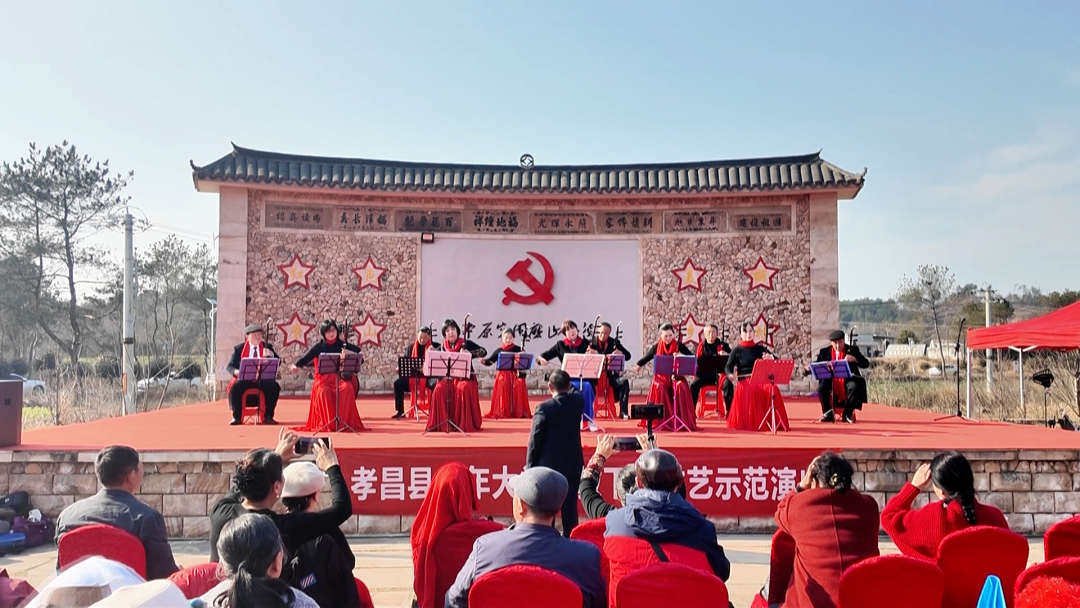 为丰富农村群众精神文化生活,传承优秀传统文化,凝聚奋进力量,1月14日,一场以“戏韵下乡 爱满冬日”为主题的文化惠民活动,在具有千年石艺传承和红色革命历史的孝昌县王店镇磨山村火热上演,为当地群众送上了一份丰盛的文化大礼和新春暖意。