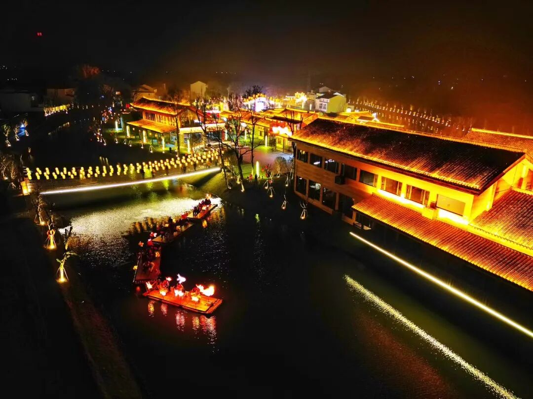 随后,考察团来到澴水湾度假区郭李营·心悦岛。这里的非遗盛宴正精彩上演,戏曲唱腔婉转悠扬,中幡翻飞、顶缸绝技惊险连连,川剧变脸更是引得现场游客叫好声不断。华灯初上,水面鱼灯次第点亮,竹筏载着游客缓缓穿行,光影摇曳间,岸上非遗表演与水上夜景相映成趣,一幅独具韵味的田园夜游画卷徐徐展开。