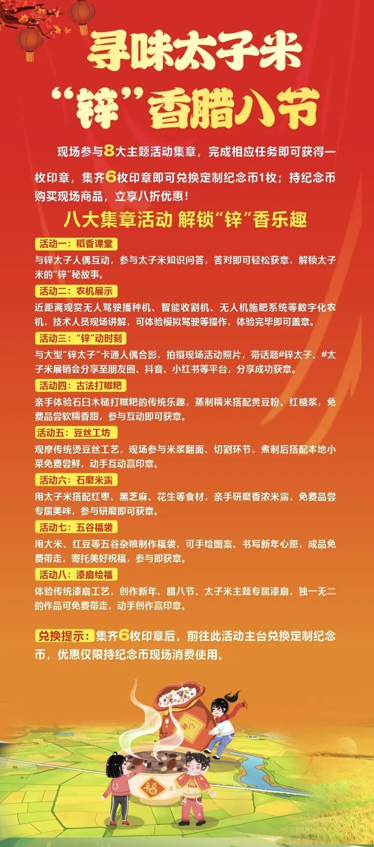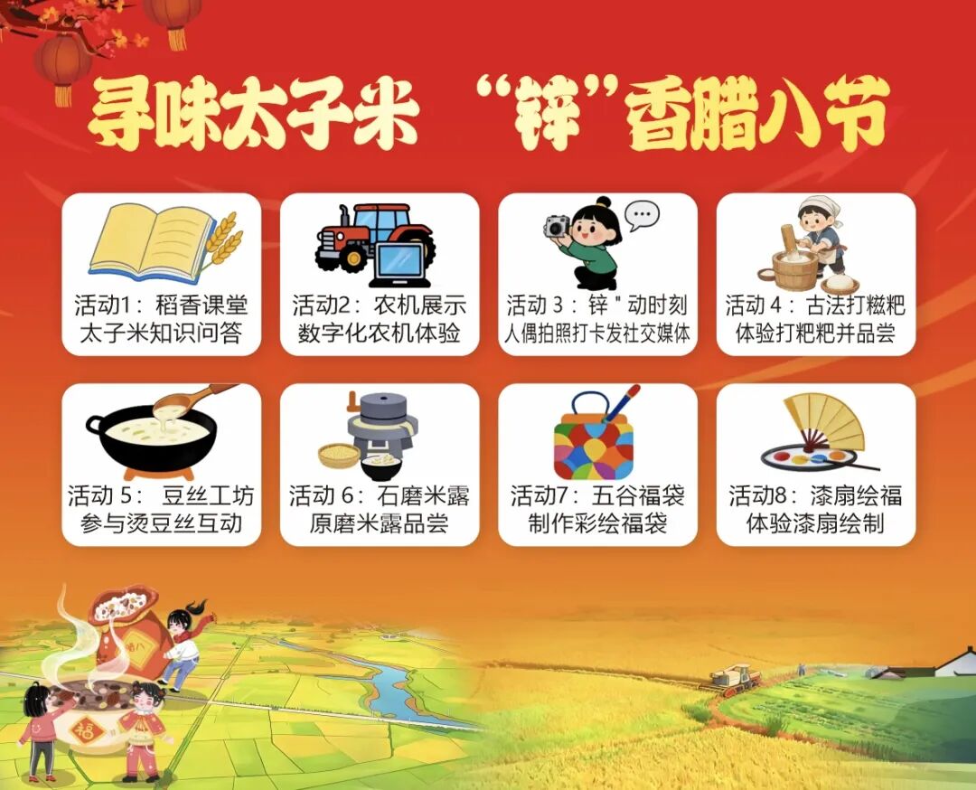 4.腊八有“锌”意:现场熬制腊八粥,以太子米为主料,搭配红枣、莲子、豆类等传统食材,提供试吃装供免费品尝。