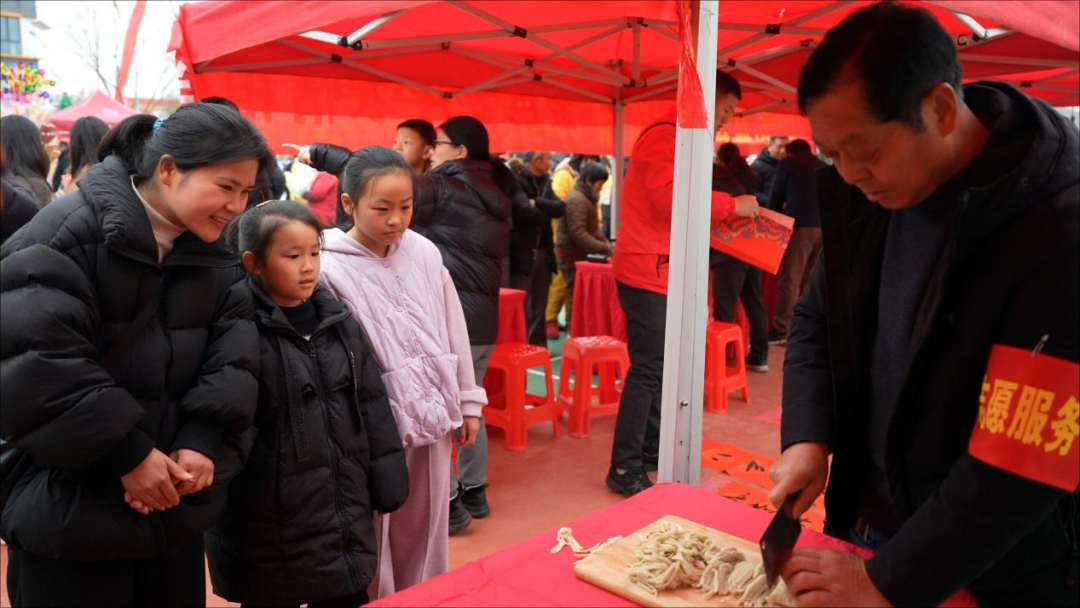 “锌悦市集”上,富锌大米、土鸡蛋等本地特色农产品整齐陈列,供游客挑选采购;“手作迎春”体验区内,打糍粑、烫豆丝的声响此起彼伏,绘漆扇、写福字等活动吸引了众多家庭参与。家长与孩子携手体验传统民俗,在亲手实践中领略腊八文化的独特魅力。