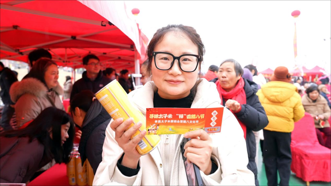 活动现场暖意融融、人潮涌动。工作人员将精心熬制的富锌太子米腊八粥免费分发给游客,软糯香甜的粥品暖入心田;现做的太子米炒饭镬气十足,香气扑鼻,引得众人驻足品尝。