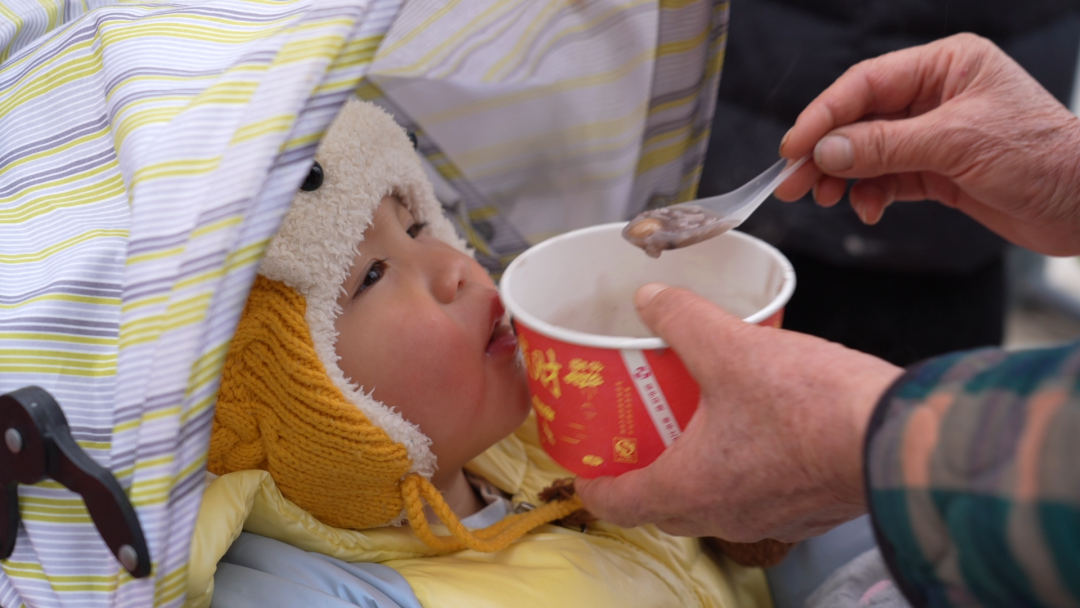 “早就听说太子米很好吃,今天我特地带着孩子过来感受腊八节的节日氛围,刚才喝了太子米煮的腊八粥,还尝了现打的糍粑,很好吃,我还买了几袋太子米和腊味,带回去给家里人尝尝。”游客王芳说。