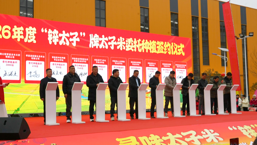 上午9时,活动在新建成的孝昌华锌现代农业科技产业园里拉开帷幕。现场通过PPT讲解、有奖问答等形式,生动介绍了太子米的营养优势与产业规划。在集中签约环节,近30家渠道商、企业与本地种植大户分别签订了3万余亩太子稻战略合作与委托种植协议,为太子米产业发展注入强劲动力。