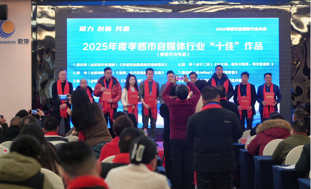 1月26日,2025年孝感市自媒体行业年会以“聚力 创新 共赢”为主题顺利举行,全面总结2025年全市自媒体行业发展成果,表扬先进典型,擘画2026年全市自媒体行业发展新图景。孝昌县自媒体协会17名会员代表参会,并获多项荣誉。