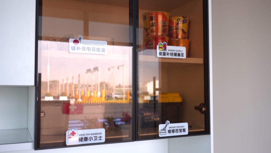 在收费站旁的服务室内,卫生间、简易医疗箱、微波炉等设施一应俱全,长途跋涉的司机师傅们可以在此短暂休整。
